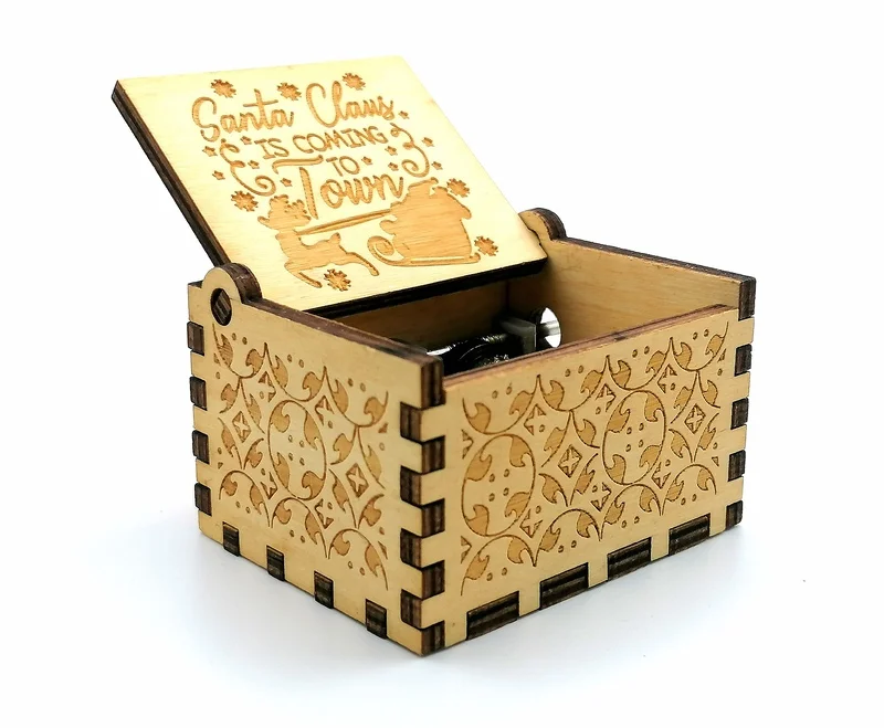 Χειροποίητο ξύλινο μουσικό κουτί από ξύλο σημύδας με χειροκίνητο μηχανισμό και χριστουγεννιάτικη μελωδία “Santa Claus Is Coming To Town”.